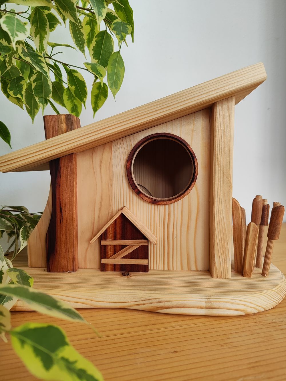 Otroška igra, družinska tradicija in bivanje ob gozdu so prebudili ustvarjalno žilico, ki sta jo Helena in njen mož Tomaž izrazila v oblikovanju lesa in bombažnih izdelkov. Izdelujeta didaktične pripomočke za šole in vrtce, uporabne in dekorativne dodatke za dom, preproste igrače in priročne tekstilne izdelke. Prepričana sta, da je domače in lokalno tisto najboljše, zato uporabljata les z Bloške planote. Izogibata se umetnim premazom, da les povsem zasije v svojih naravnih barvah. Nekateri izdelki ponosno nosijo tudi oznako Medvedu prijazno. Vsak izdelek je narejen ročno in unikaten. Pravita, da sta malo »čez les«, zato so njuni izdelki navihani, preprosti in drugačni.